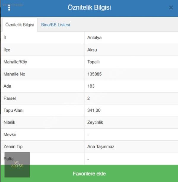 AKSU TOPALLI 340 M2 SATILIK AR